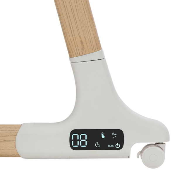 Das Bedienfeld mit Lichtanzeige bietet eine Auswahl an 5 Schaukelgeschwindigkeiten, einen 8-, 15- und 30-Minuten-Timer mit12 Melodien. Per Fernbedienung oder Bluetooth-Smartphone-Verbindung ist das Abspielen fester oder eigener Melodien möglich. Das Netzteil ist im Lieferumfang enthalten. INPUT: 100-240V ` 50/60Hz 0,3A MAX OUTPUT: 5,5-6V 0,8A